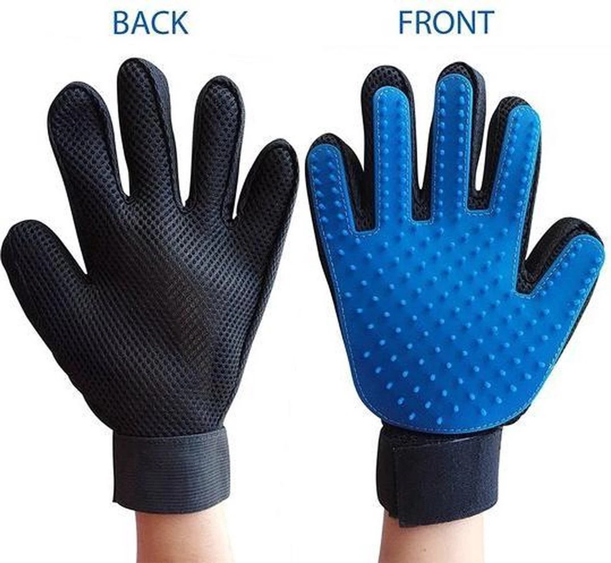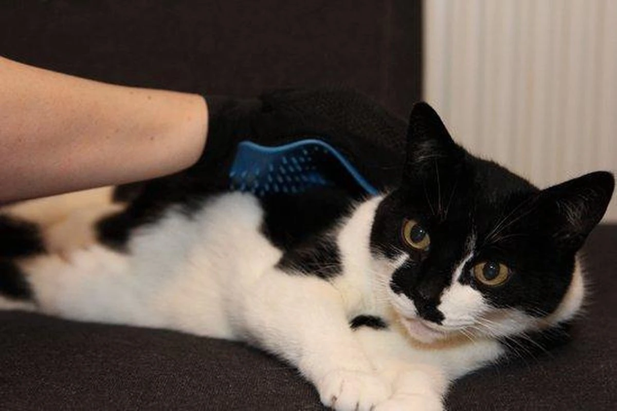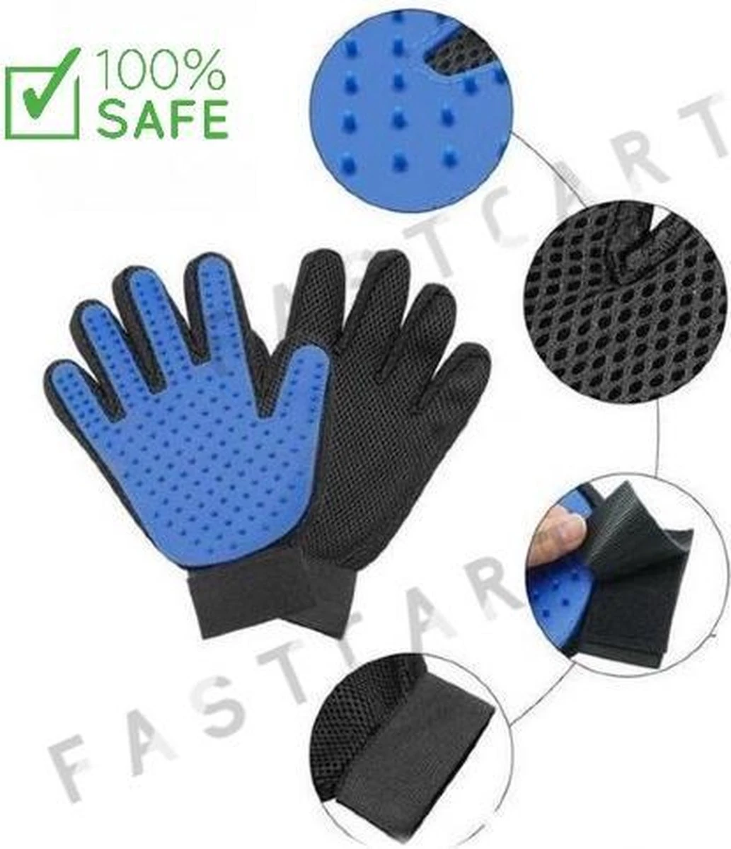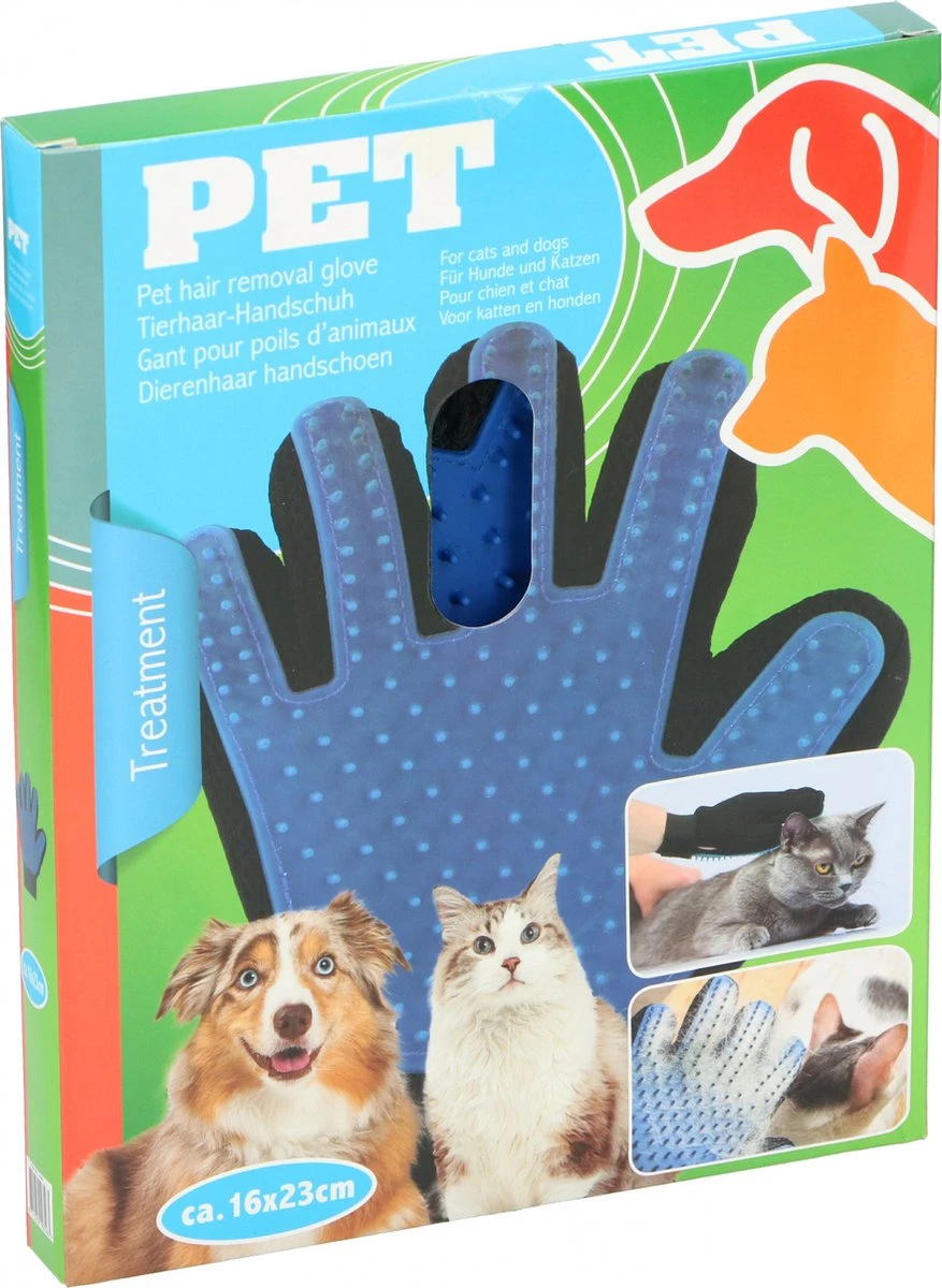 Vijfvingerige handschoen om het hele lichaam van uw huisdier te borstelen, zelfs op plaatsen die moeilijk te bereiken zijn met een borstel, zoals de achterkant van de poten, de staart of de kop.