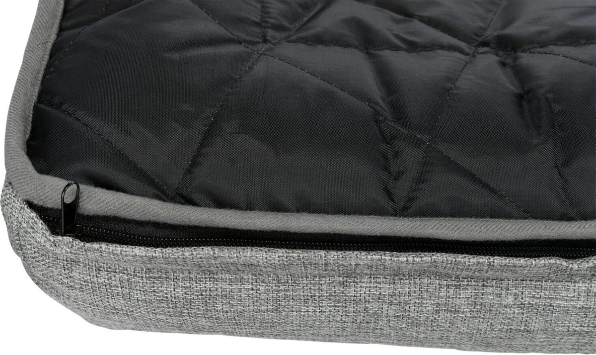 Met een lekkere dikke zachte rand rondom het zitgedeelte waar ze hun kop op kunnen leggen. Het lange deel valt gedeeltelijk over de bank, zodat als de honden opspringen de voorkant van de bank ook netjes blijft.